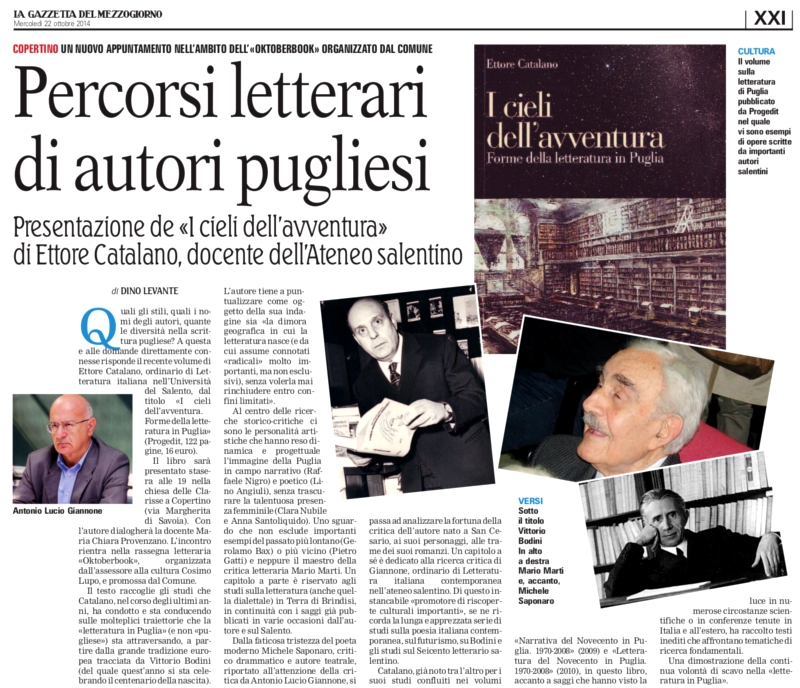 Presentazione de “I cieli dell’avventura” di Ettore Catalano, docente dell’Ateneo salentino