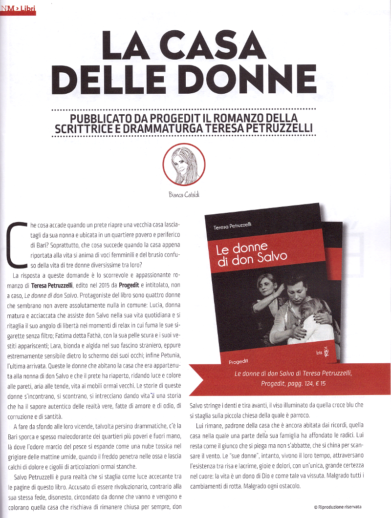 “Le donne di don Salvo” di Teresa Petruzzelli recensito da Bianca Cataldi su “NelMese”, nel numero di settembre-ottobre-novembre 2015