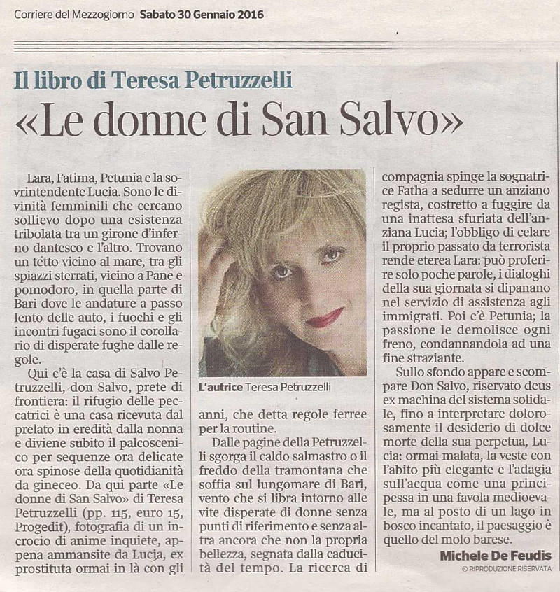Michele De Feudis recensisce “Le donne di don Salvo” sul “Corriere del Mezzogiorno”