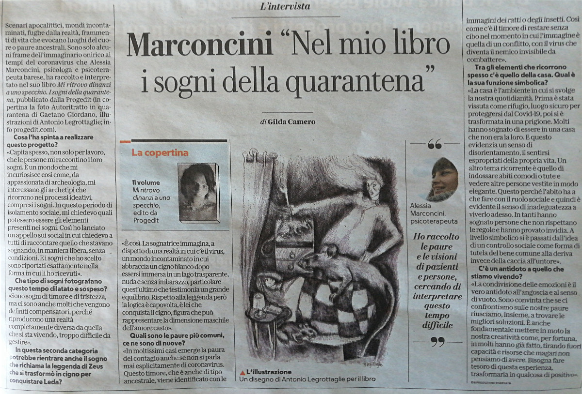 Gilda Camero intervista Alessia Marconcini, autrice di “Mi ritrovo dinanzi a uno specchio. I sogni della quarantena” su «la Repubblica»