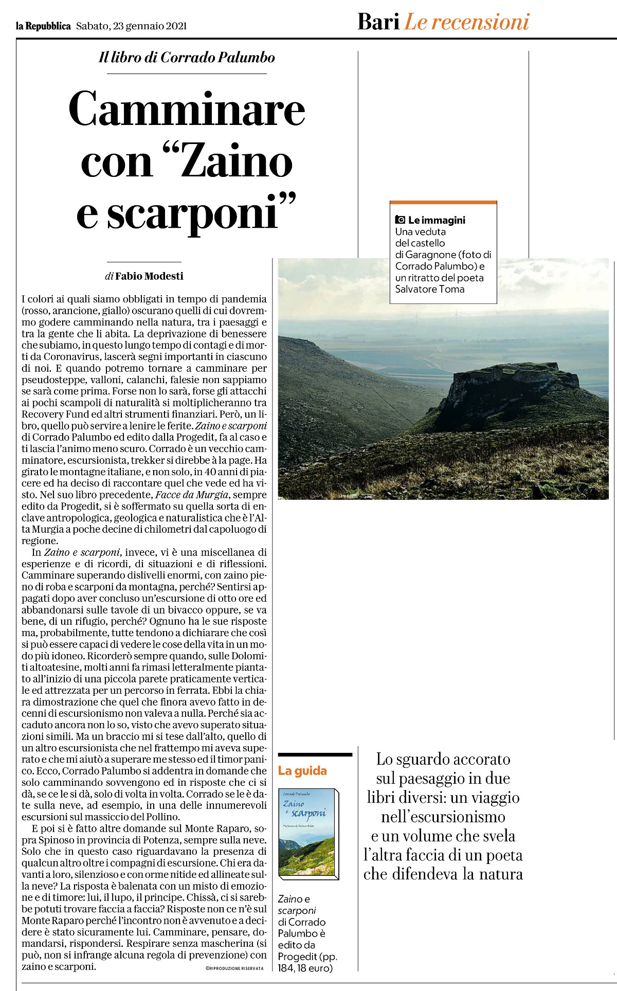 Fabio Modesti recensisce “Zaino e scarponi” di Corrado Palumbo su «La Repubblica»