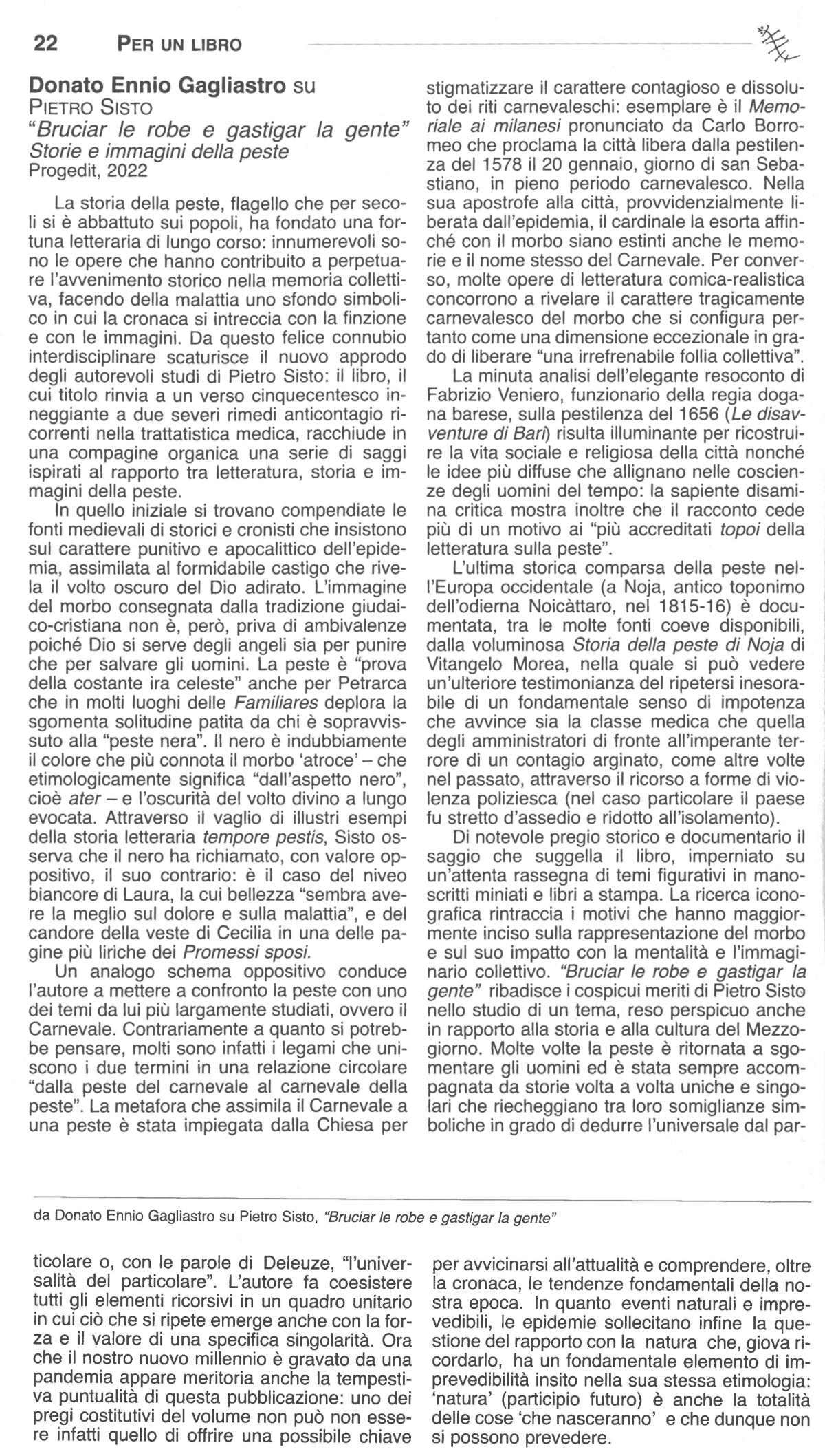 Donato Ennio Gagliastro recensisce “Bruciar le robe e gastigar la gente” di Pietro Sisto su «l’immaginazione»
