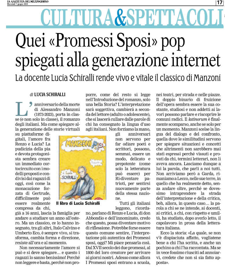 Lucia Schiralli parla di “Manzoni pop” su “La Gazzetta del Mezzogiorno”