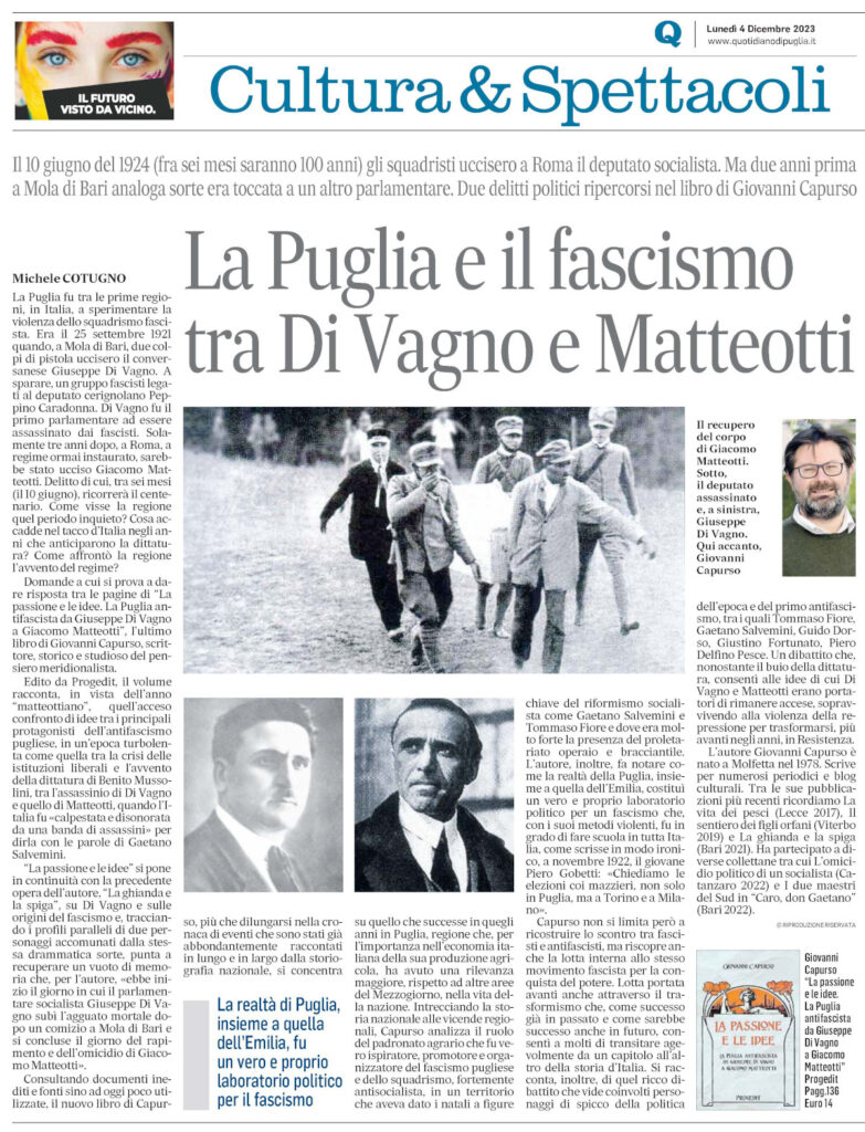 Michele Cotugno parla di “La passione e le idee” di Giovanni Capurso su «Quotidiano di Puglia»