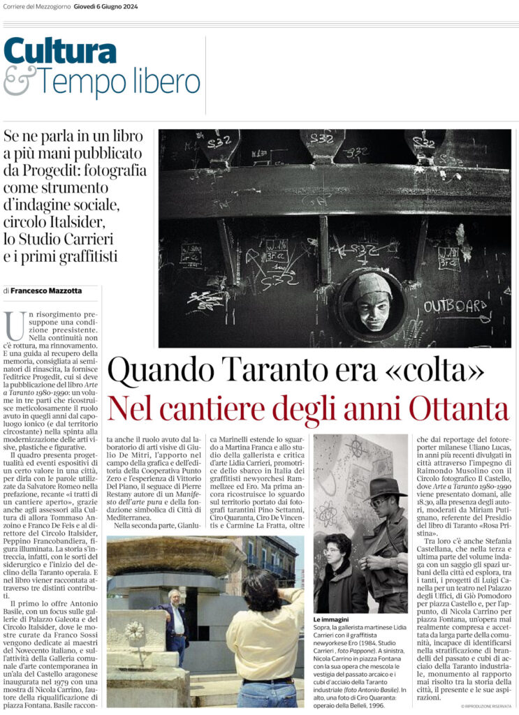 Francesco Mazzotta parla di “Arte a Taranto. 1980-1990” di A. Basile e G. Marinelli sul «Corriere del Mezzogiorno» di giovedì 6 giugno