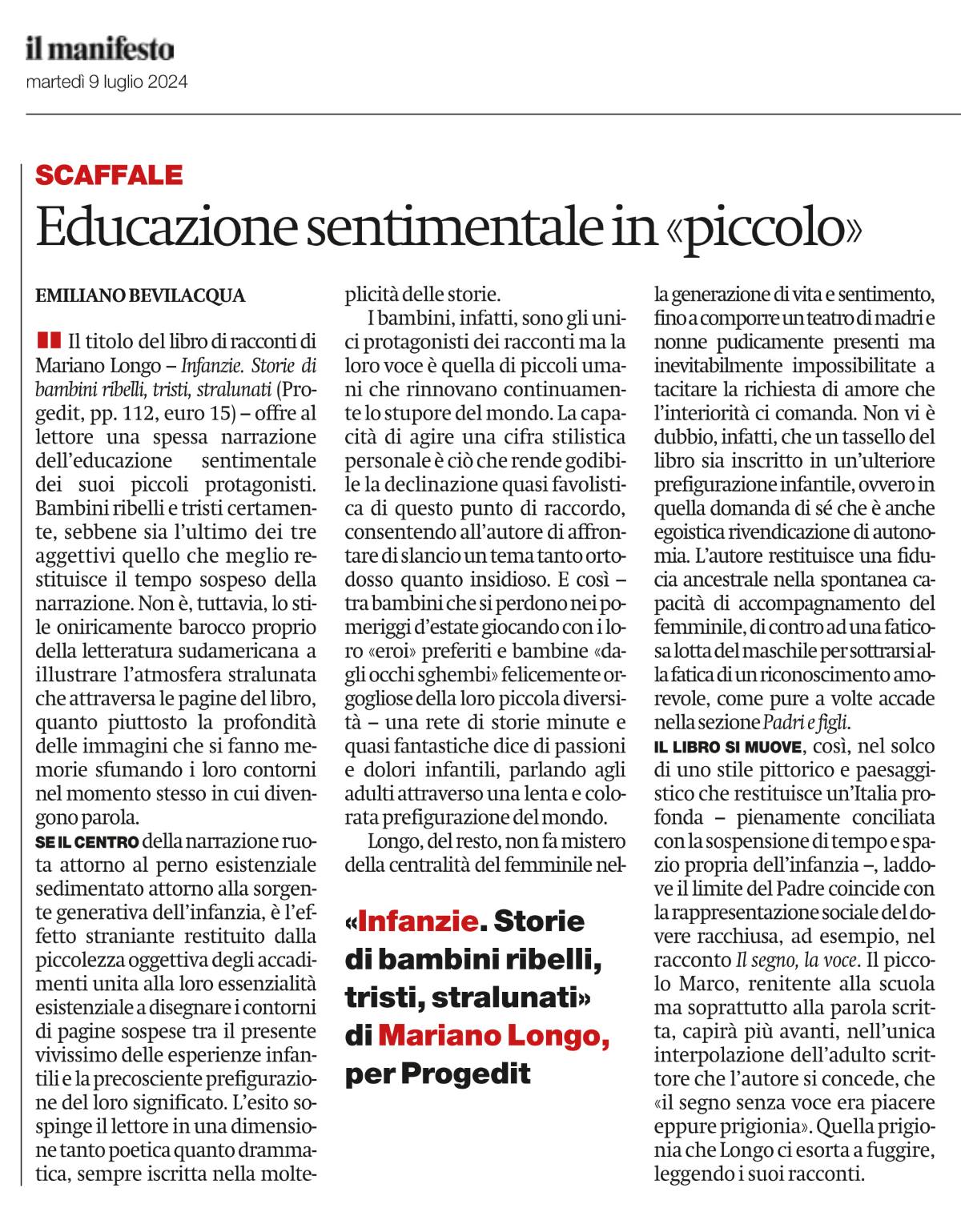 Emiliano Bevilacqua parla di “Infanzie” di Mariano Longo su «il manifesto»