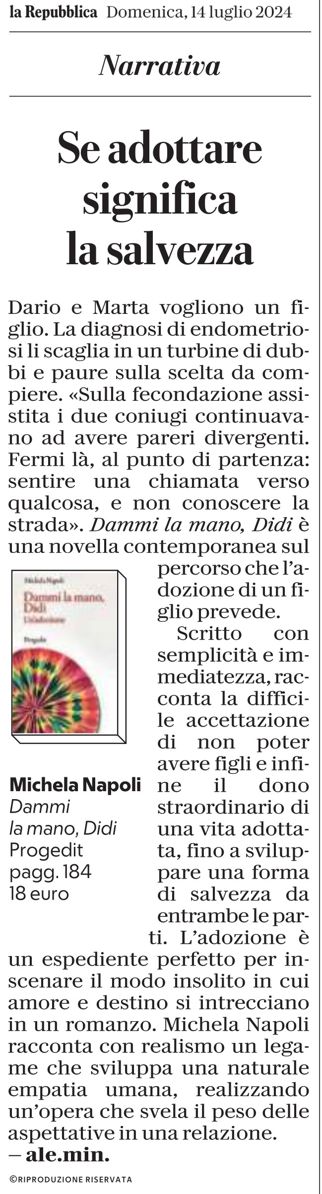 Su “la Repubblica” Alessandra Minervini parla di “Dammi la mano, Didi” di Michela Napoli