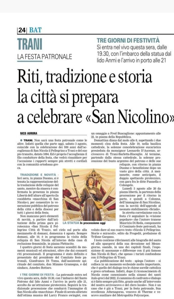 Nico Aurora parla di “Nicola il Pellegrino” di Maurizio Di Reda su «La Gazzetta del Mezzogiorno»