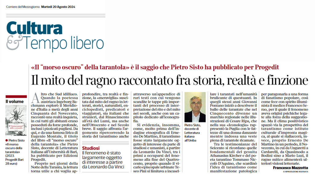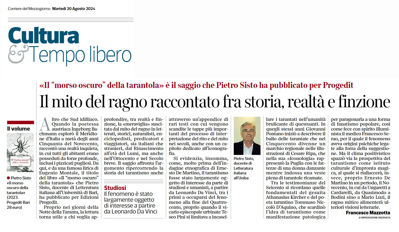 Francesco Mazzotta parla di “Il morso oscuro della tarantola” sul «Corriere del Mezzogiorno»