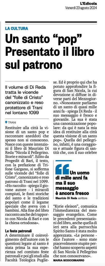 Marika Scuccimarro parla di “Nicola il Pellegrino” di Maurizio Di Reda su «L’edicola del sud»