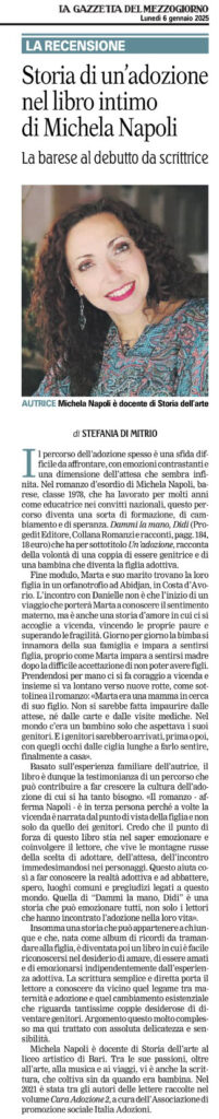 Stefania Di Mitrio parla di “Dammi la mano, Didi” di Michela Napoli su “La Gazzetta del Mezzogiorno”